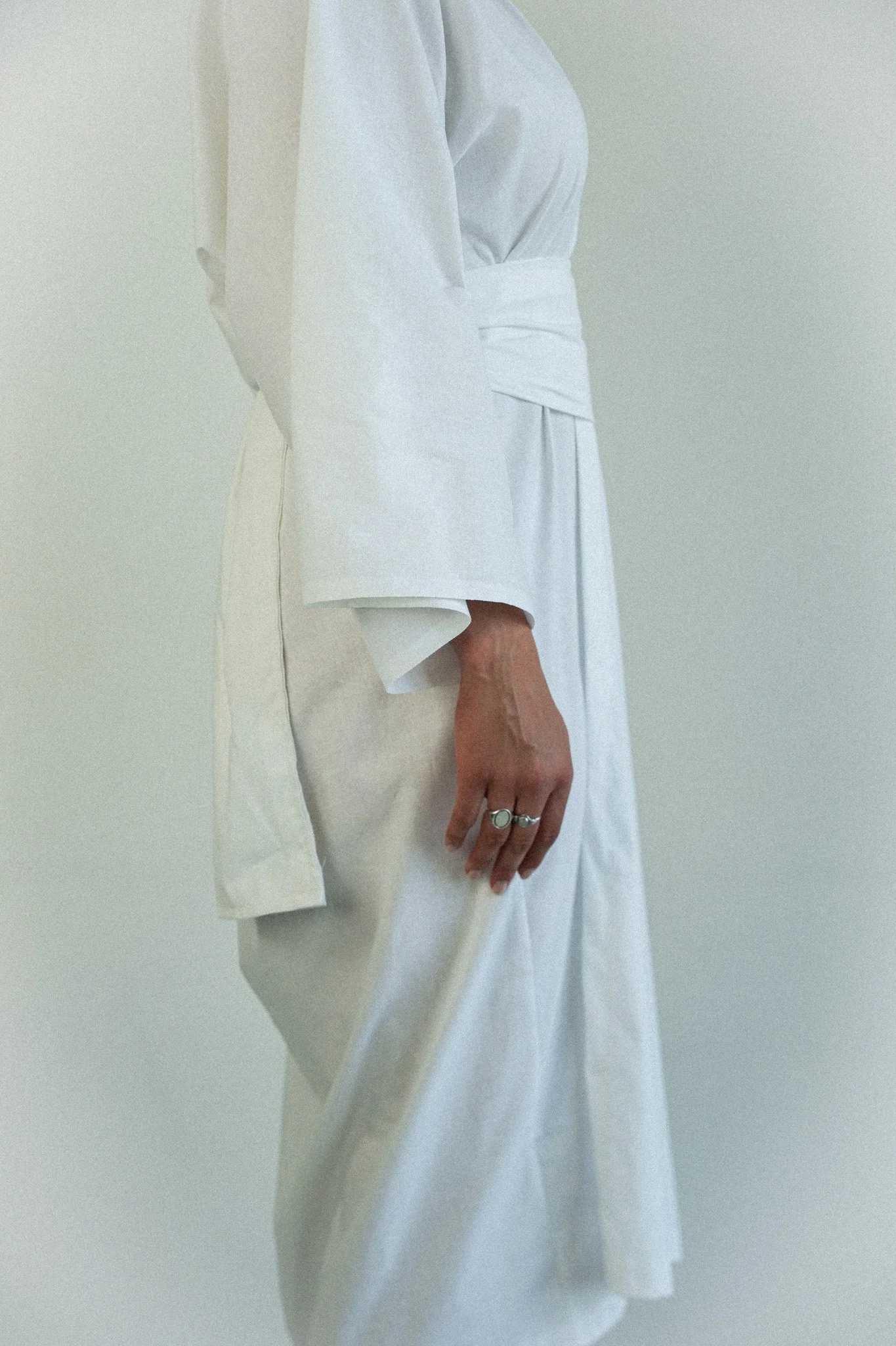 Een kimono, wat letterlijk “iets om te dragen” betekent, is een traditioneel Japans kledingstuk voor zowel mannen als vrouwen. Dit iconische kledingstuk maakt al eeuwenlang deel uit van de Japanse cultuur. De kimono is een van de duurzaamste kledingstukken om te maken, omdat er weinig stof verloren gaat bij de productie. Deze kimono is gemaakt van biologisch katoen, wat bijdraagt aan de duurzaamheid van de stof. Daarnaast is de kimono door mijzelf vervaardigd, wat zorgt voor een duurzame productie.